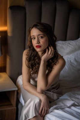 В роскошном алом шёлке она выглядит как первое яркое пламя в тёмной комнате mdash неуловимая смесь мягкой